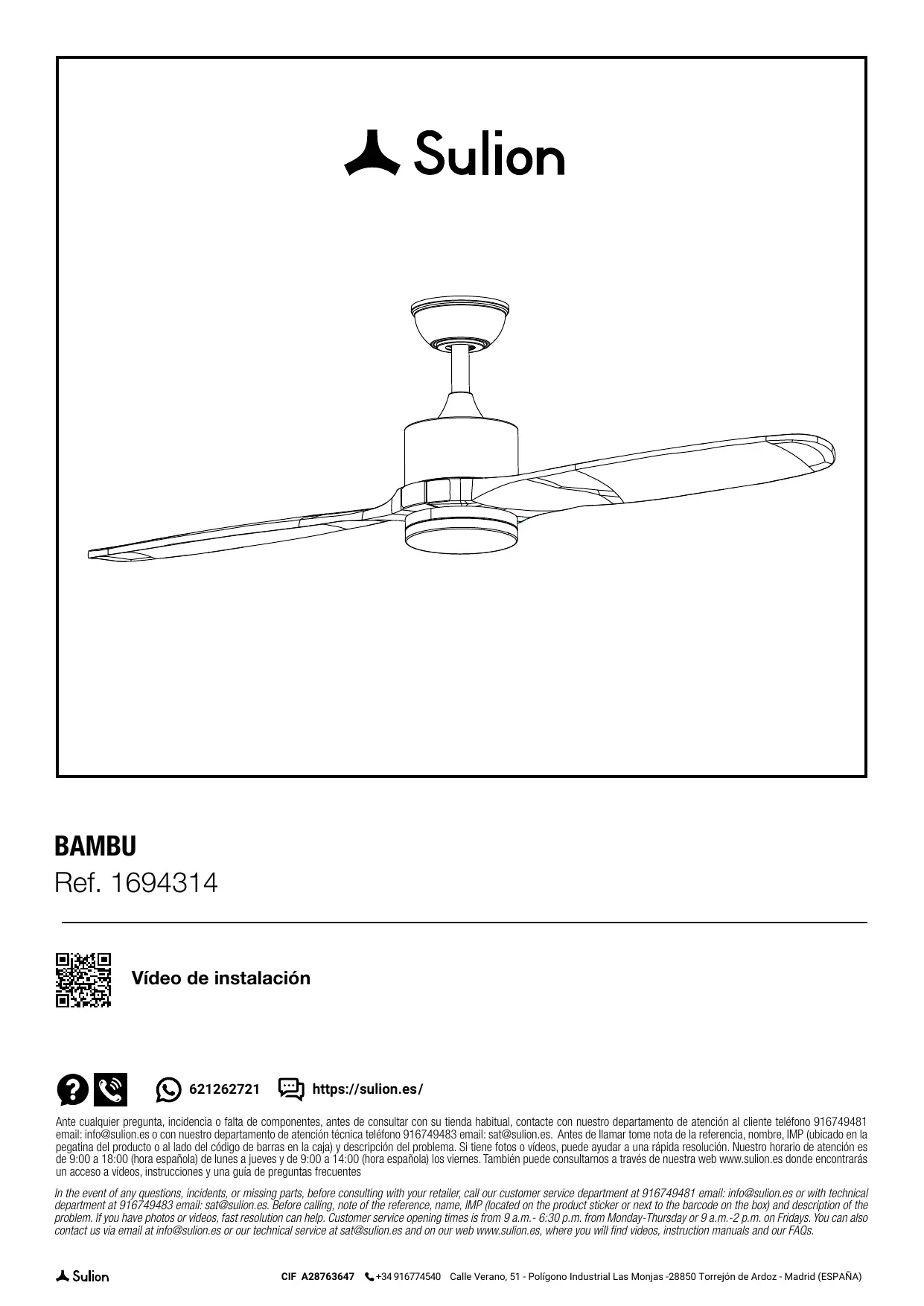 BAMBU - Ventilateur SULION - Notice d'utilisation et mode d'emploi gratuit