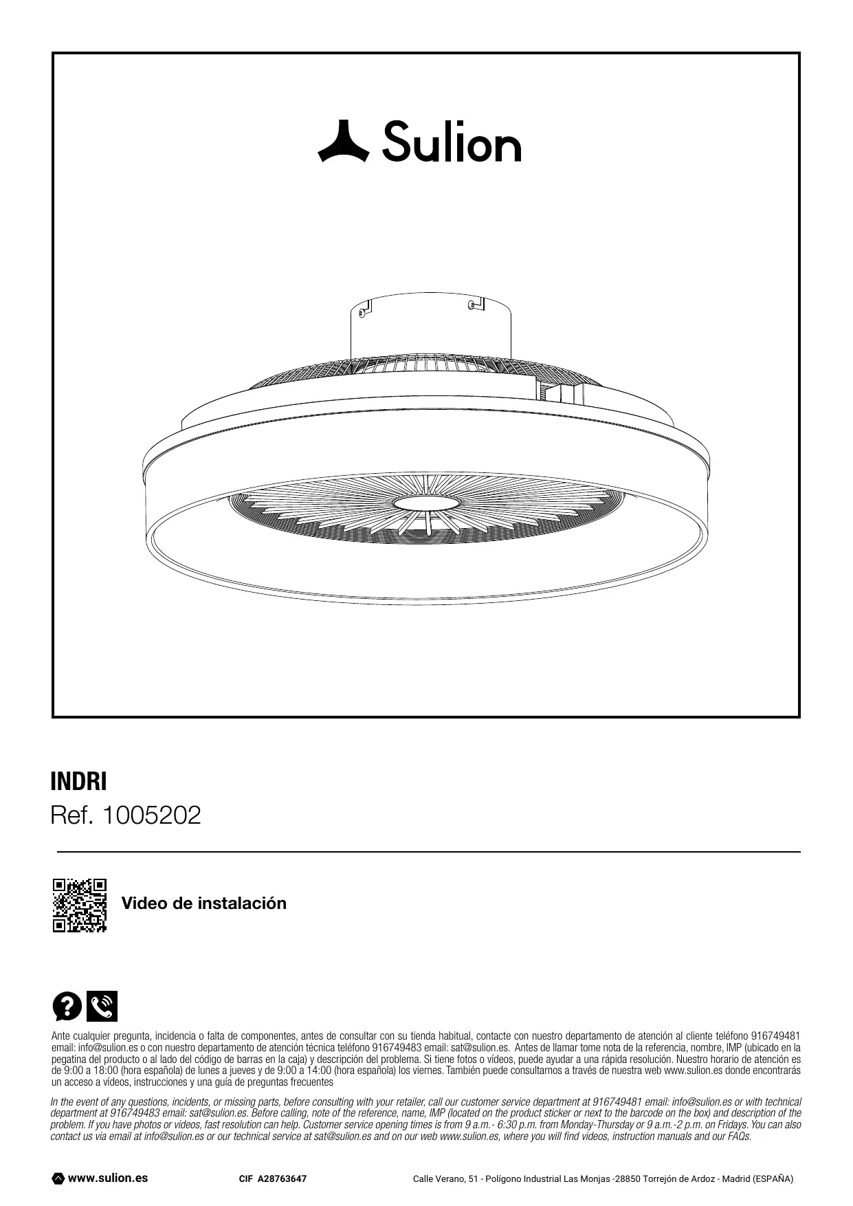 INDRI - Ventilateur de plafond SULION - Notice d'utilisation et mode d'emploi gratuit