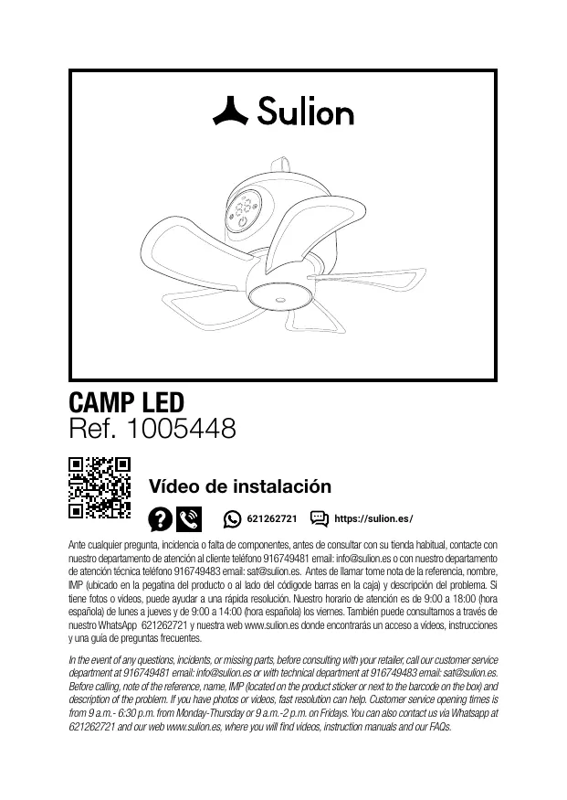 CAMP LED - Ventilateur de plafond SULION - Notice d'utilisation et mode d'emploi gratuit