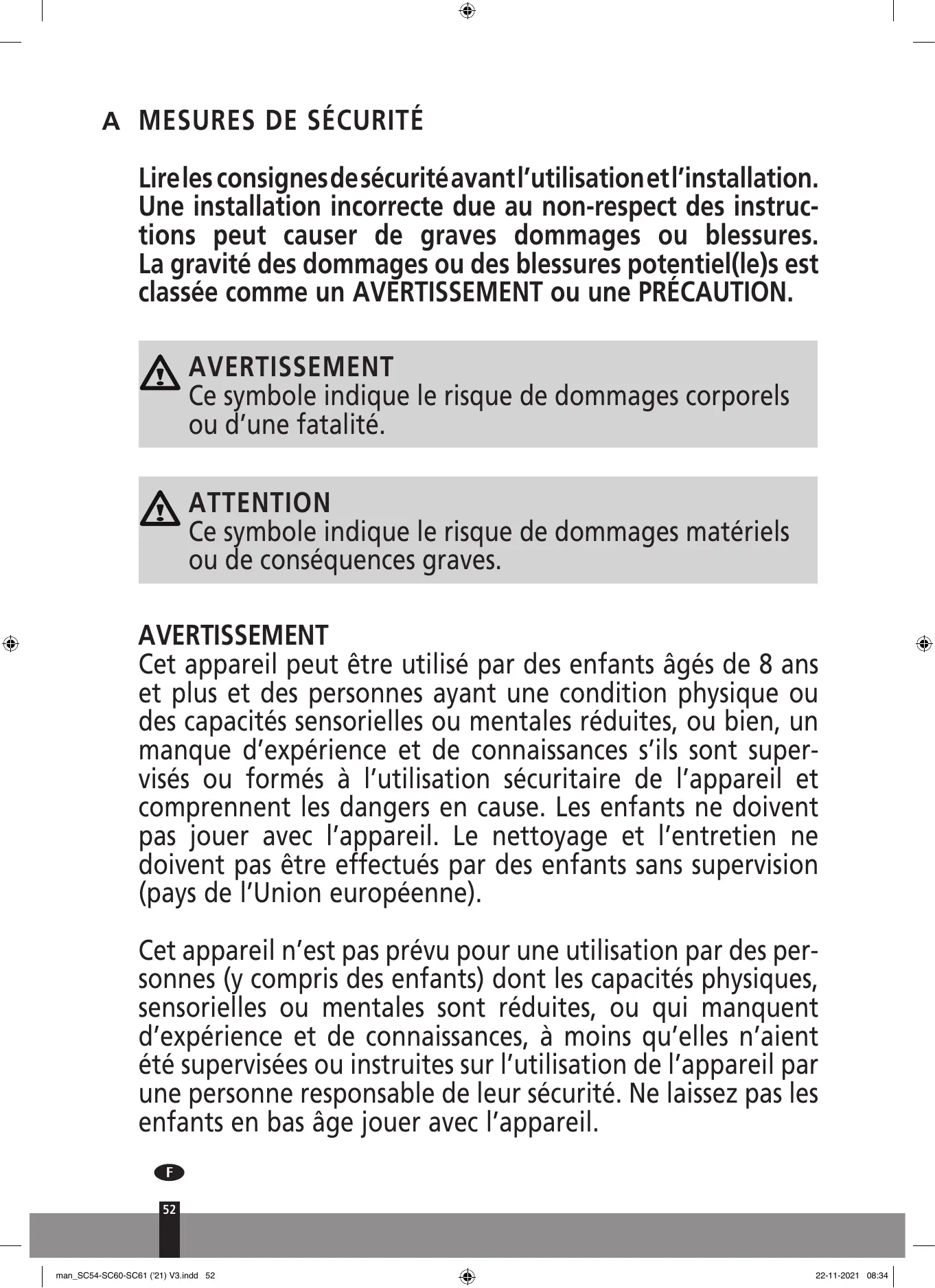 MODE D'EMPLOI SC 54xx - SC 60xx - SC 61xx QLIMA