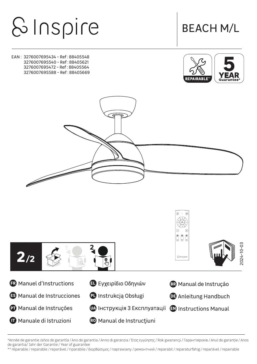 BEACH M - Ventilateur de plafond INSPIRE - Notice d'utilisation et mode d'emploi gratuit