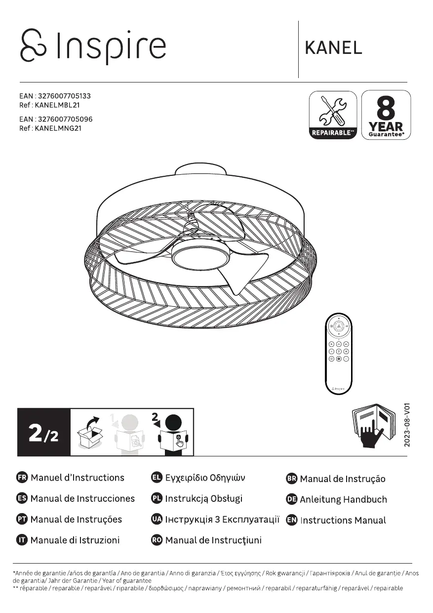 KANEL - Ventilateur de plafond INSPIRE - Notice d'utilisation et mode d'emploi gratuit
