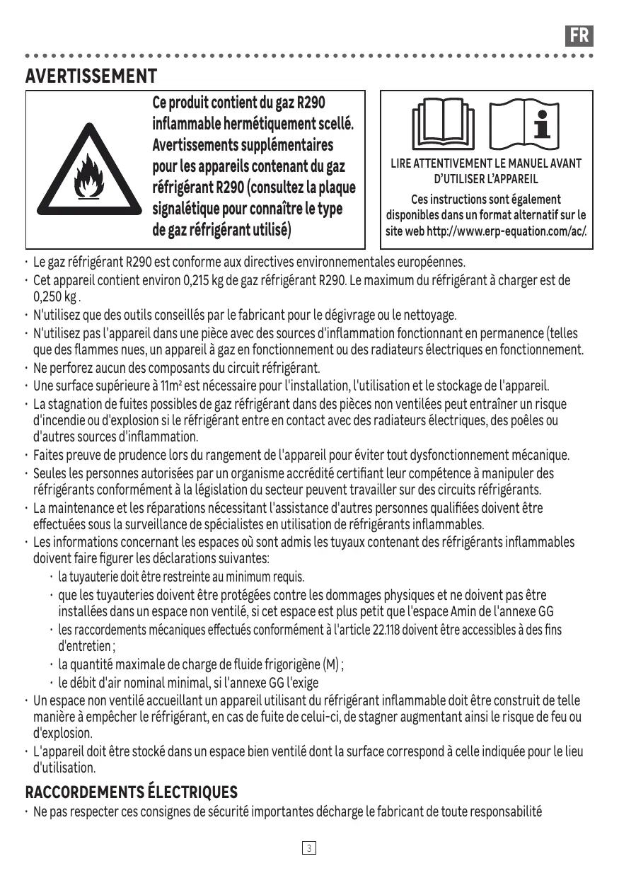 INSTRUCTION POUR L'ENTRETIEN DES APPAREILS CONTENANT DES FLUIDES FRIGORIGENES INFLAMMABLES R290
