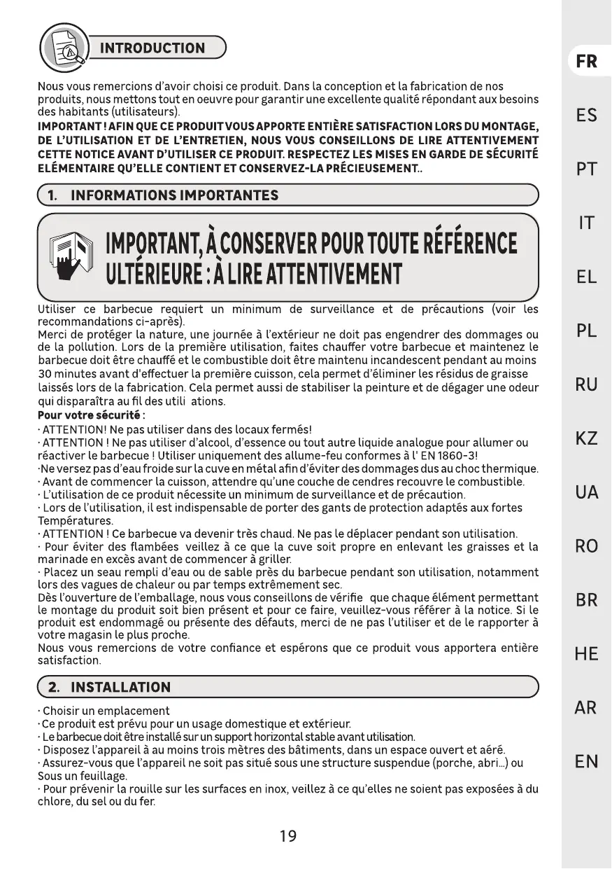 - ATTENTION ! Ce barbecue va devenir très chaud. Ne pas Le déplacer pendant son utilisation.