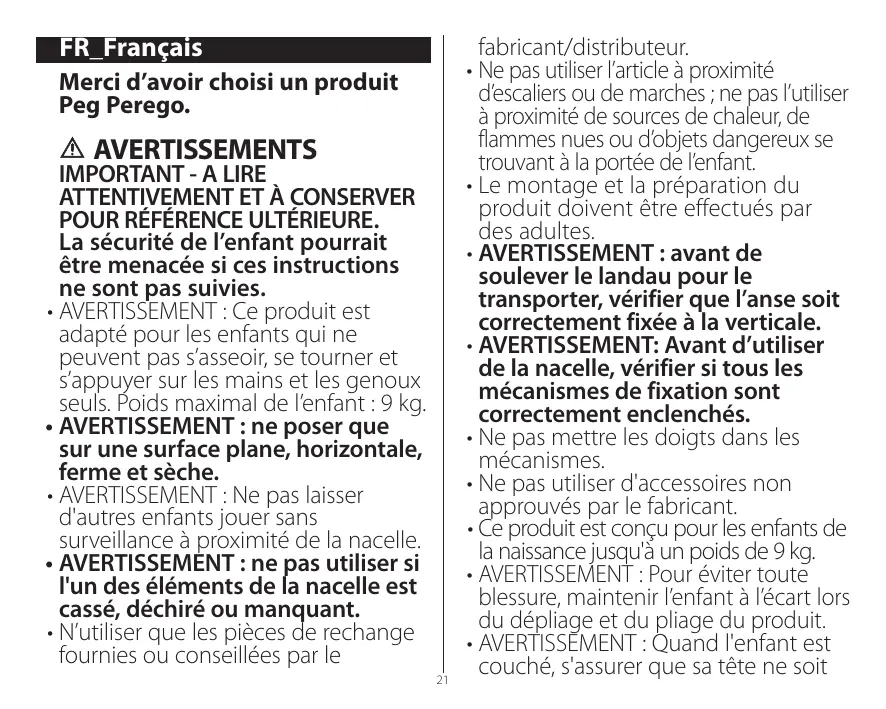 Le manuel d'utilisation est disponible sur le site web de Peg Perego dans la section support ou dans l'emballage du produit.