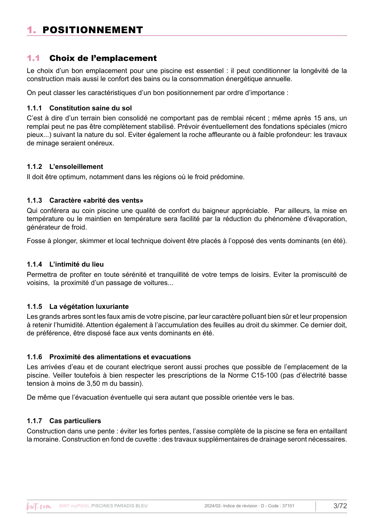 PISCINES PARADIS BLEU 2024/02- Indice de révision : D - Code : 37101 21/72