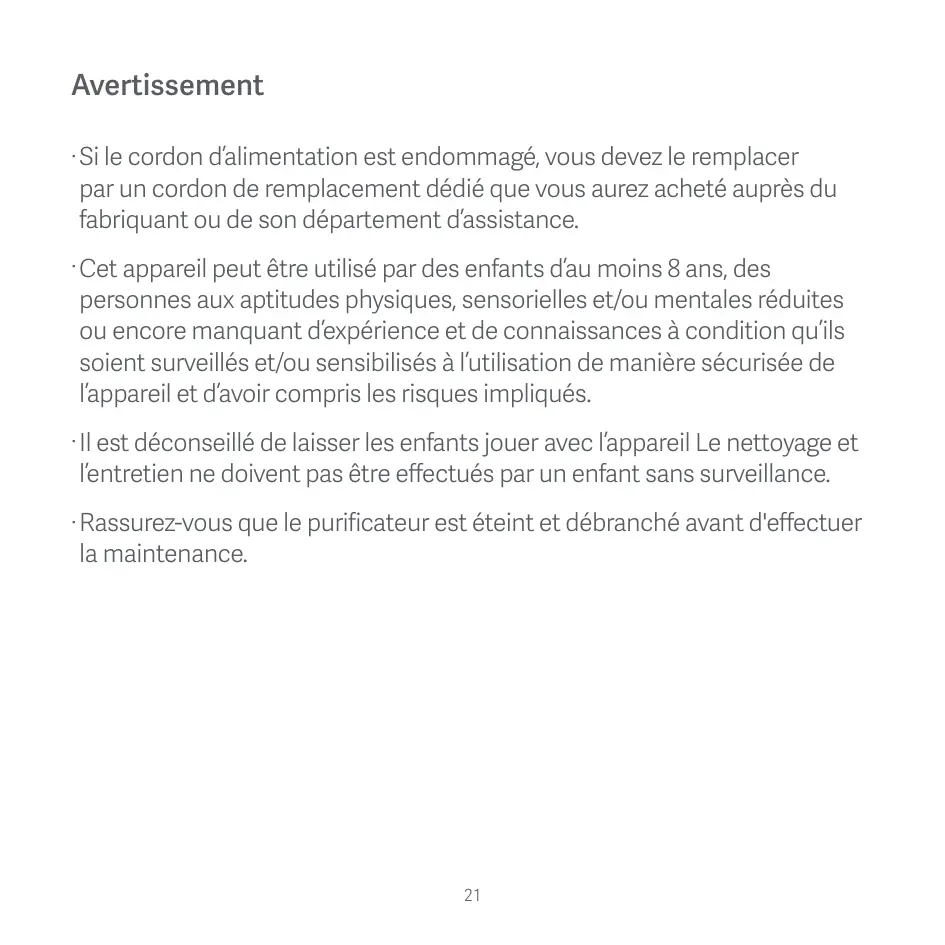 -Rassurez-vous que le purificateur est éteint et débranché avant d'effectuer la maintenance.