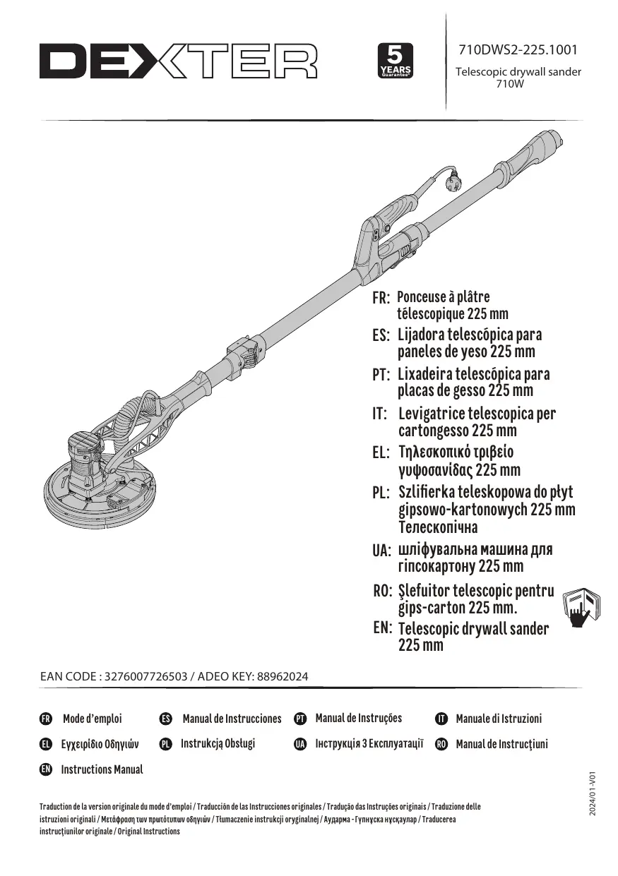 710DWS2-225.1001 - Ponceuse à plâtre DEXTER - Notice d'utilisation et mode d'emploi gratuit