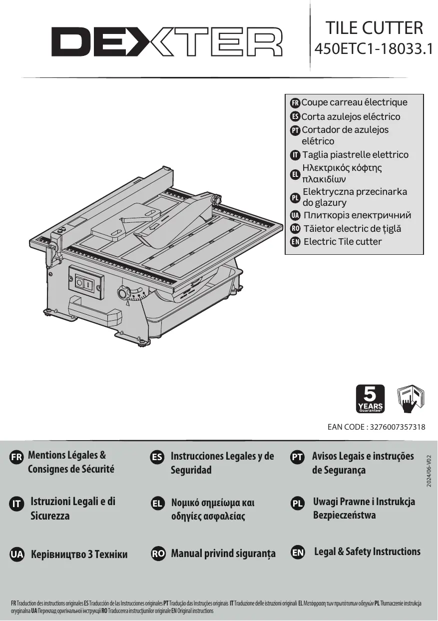 450ETC1-18033.1 - Coupe-carreaux DEXTER - Notice d'utilisation et mode d'emploi gratuit