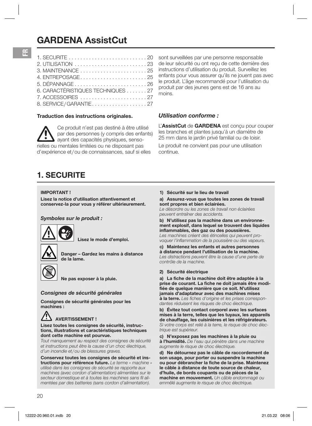 Retrouvez gratuitement la notice de l'appareil 12222 GARDENA au format PDF.