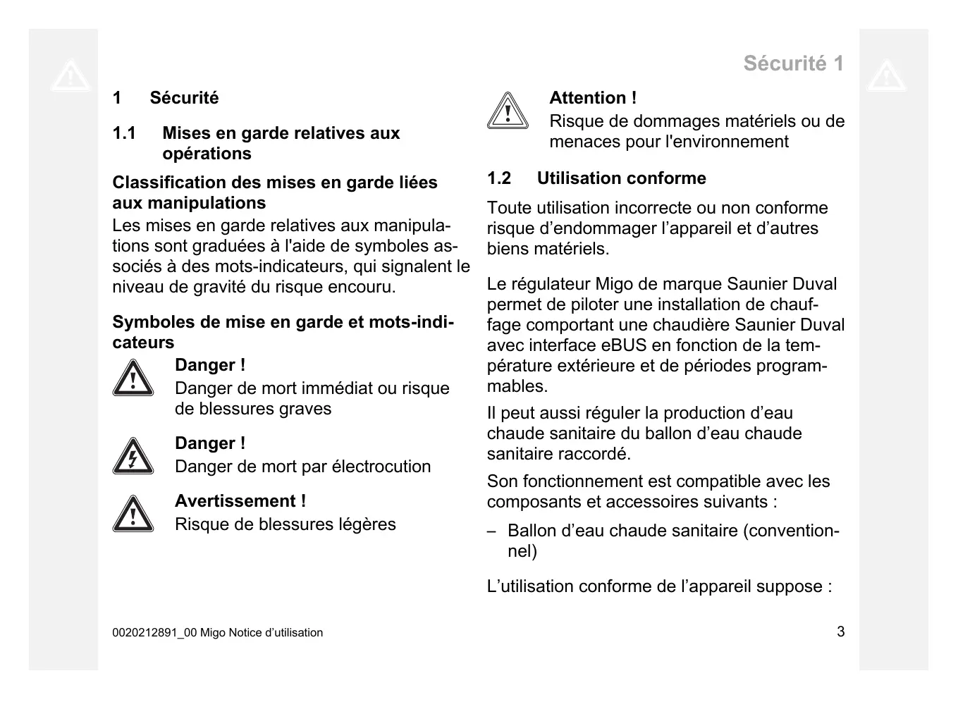 MODE D'EMPLOI MIGO SAUNIER DUVAL
