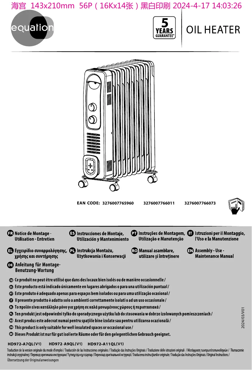 OLEA 2 SILV - Radiateur bain d\'huile EQUATION - Notice d'utilisation et mode d'emploi gratuit