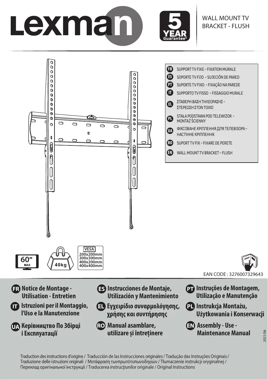 WALL MOUNT TV BRACKET - FLUSH - Support mural pour téléviseur LEXMAN - Notice d'utilisation et mode d'emploi gratuit