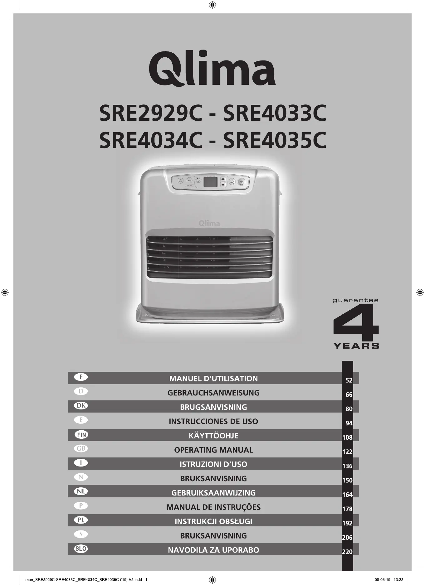 SRE4035C - SRE2929C - SRE4033C - SRE4034C - Poêle à pétrole QLIMA - Notice d'utilisation et mode d'emploi gratuit
