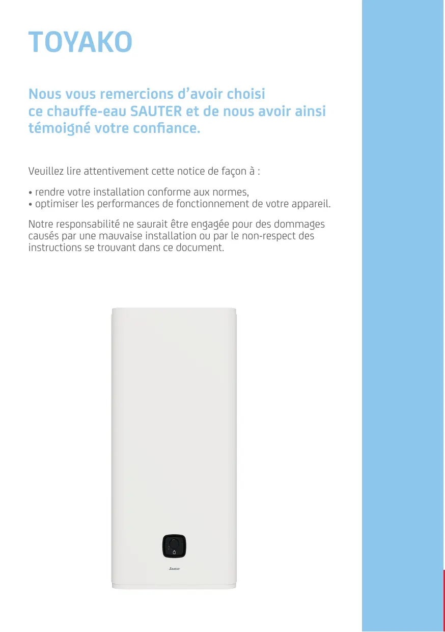 TOYAKO - Chauffe-eau électrique SAUTER - Notice d'utilisation et mode d'emploi gratuit