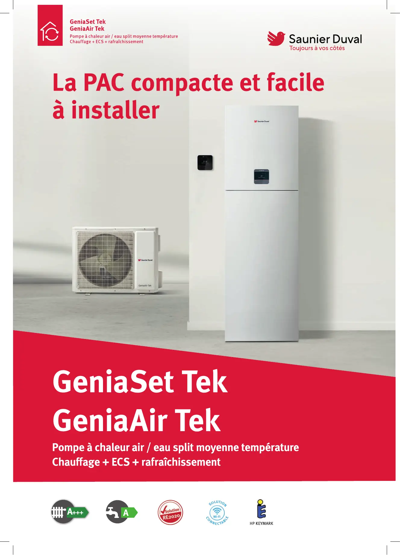 GeniaSet Tek & GeniaAir Tek Pompe à chaleur air / eau split moyenne température f LA Chauffage + ECS + rafraîchissement N 1 Saunier Duval Toujours à vos côtés
