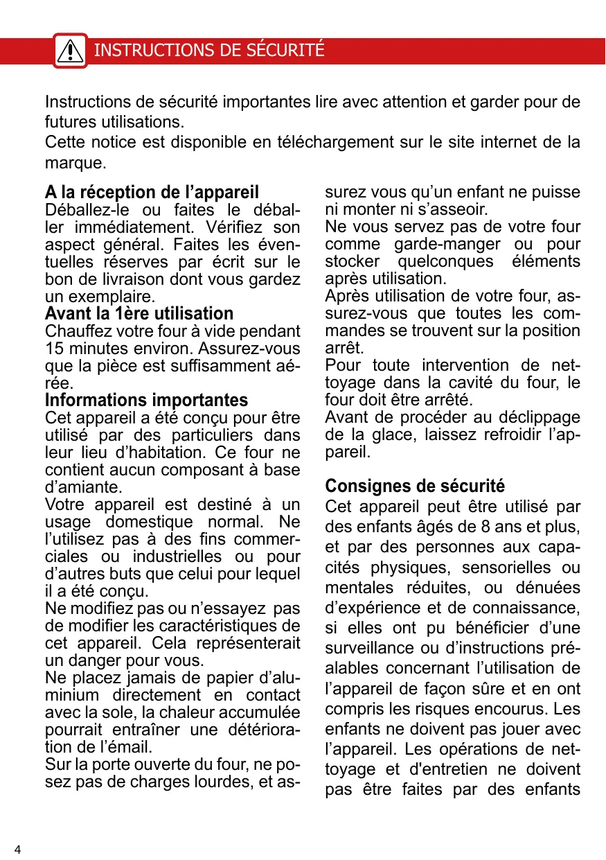 Consignes de sécurité