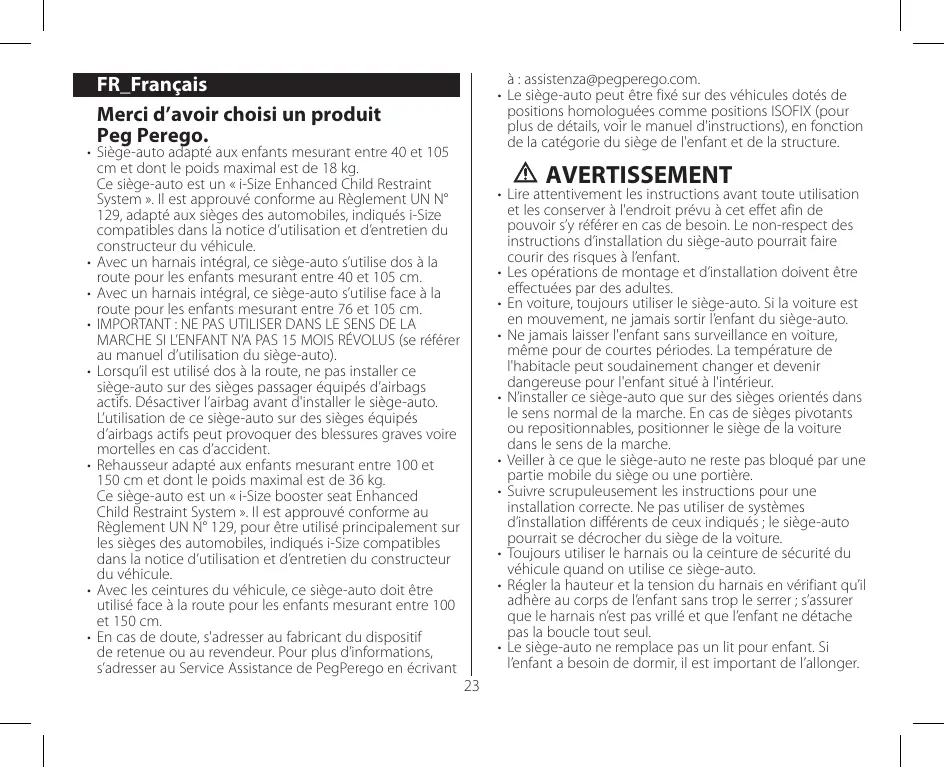 Retrouvez gratuitement la notice de l'appareil Primo Viaggio 360 EVO PEG PEREGO au format PDF.