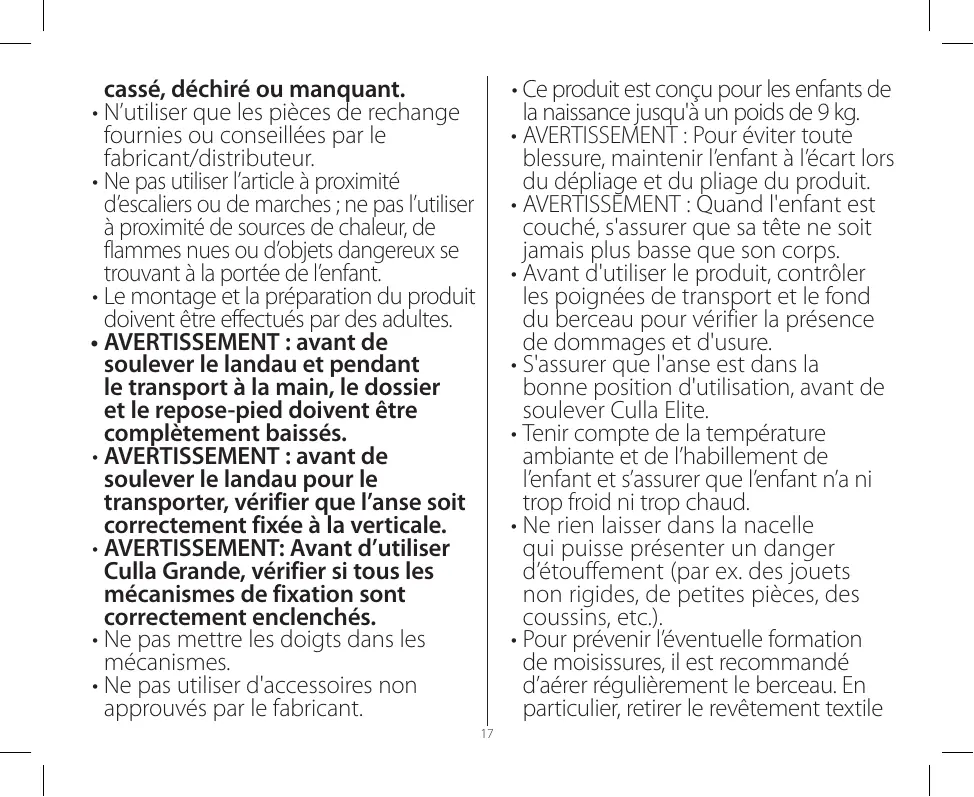 Culla Elite - Poussettes et accessoires PEG PEREGO - Notice d'utilisation et mode d'emploi gratuit