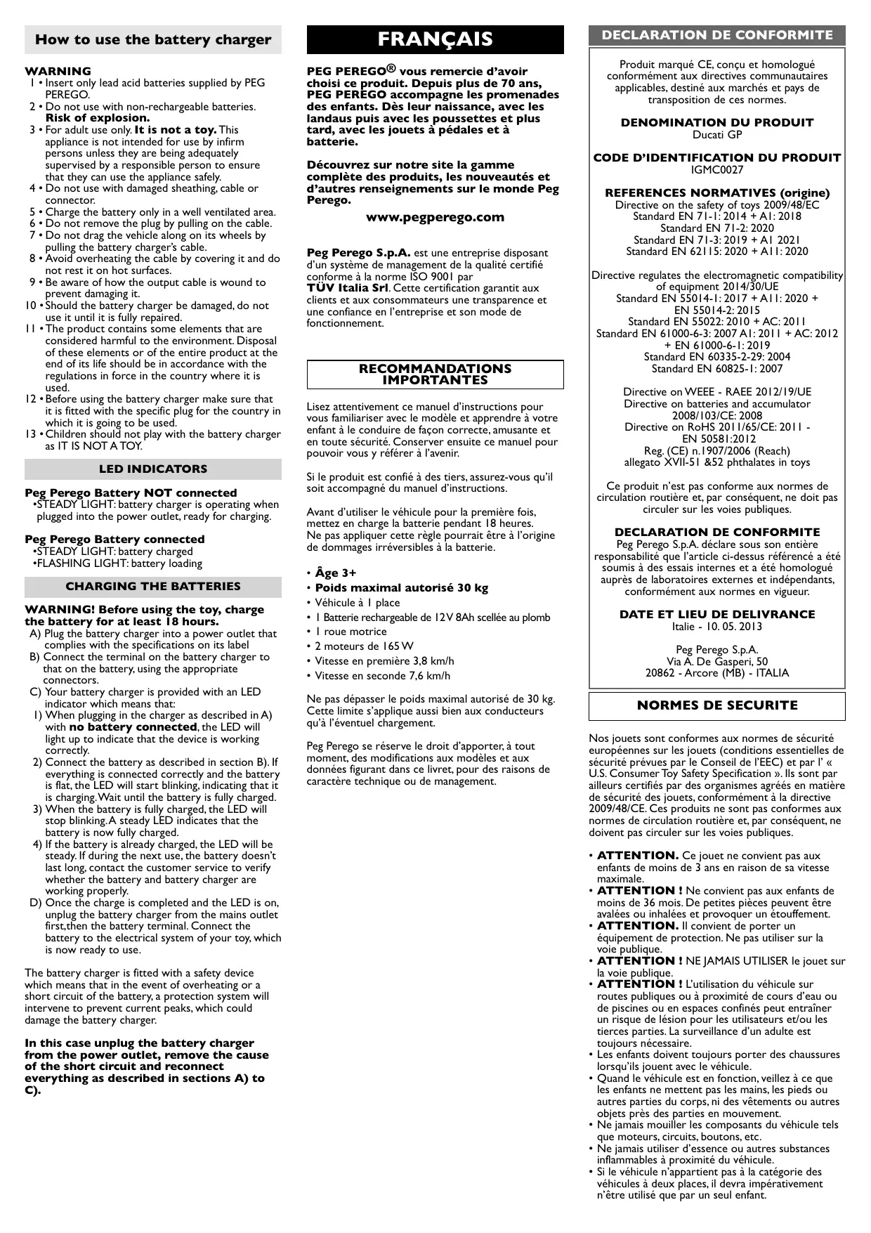 Retrouvez gratuitement la notice de l'appareil Ducati GP PEG PEREGO au format PDF.