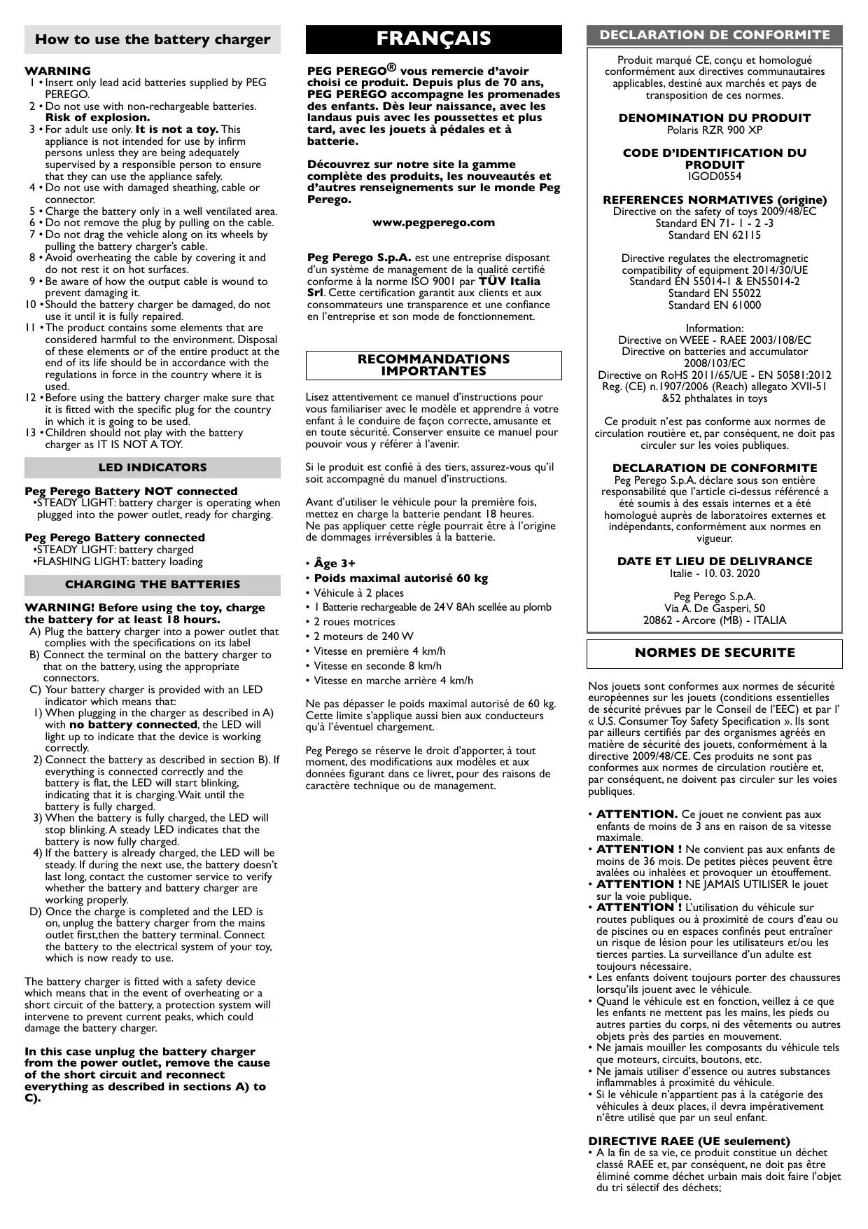 Polaris RZR 900 XP - TOUT TERRAIN PEG PEREGO - Notice d'utilisation et mode d'emploi gratuit