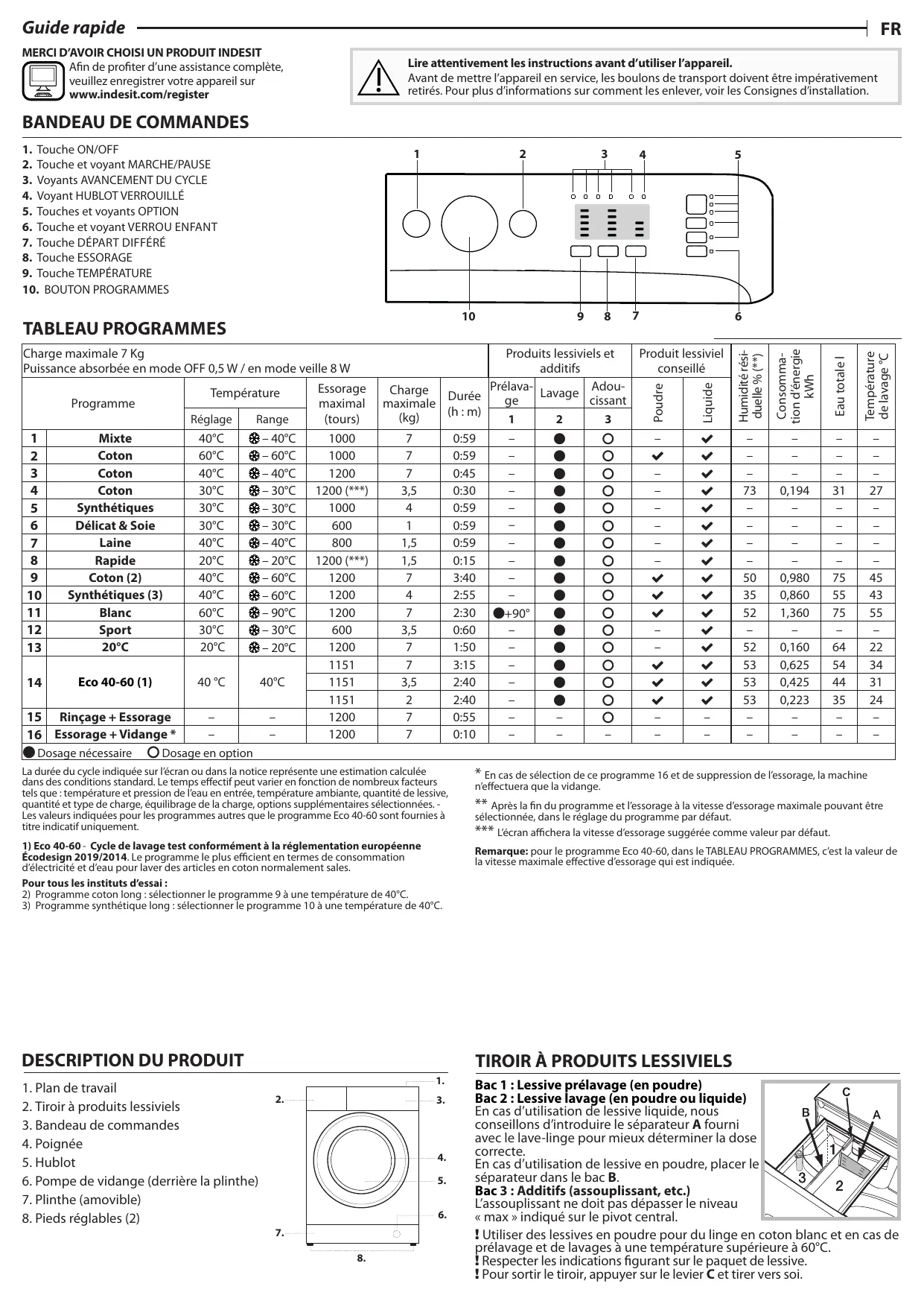 Retrouvez gratuitement la notice de l'appareil mtwa71296wfr INDESIT au format PDF.