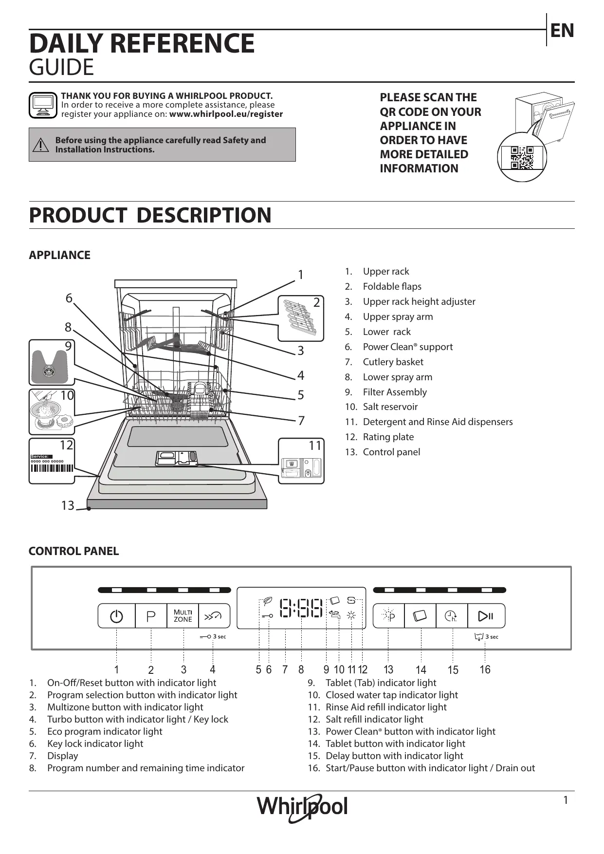 D'UTILISATION QUOTIDIENNE MERCI D'AVOIR CHOISI UN PRODUIT WHIRLPOOL. à à MERCI DE SCANNER LE fer votre appareil ur mu pegLeureglster 7 QR CODE SUR VOTRE