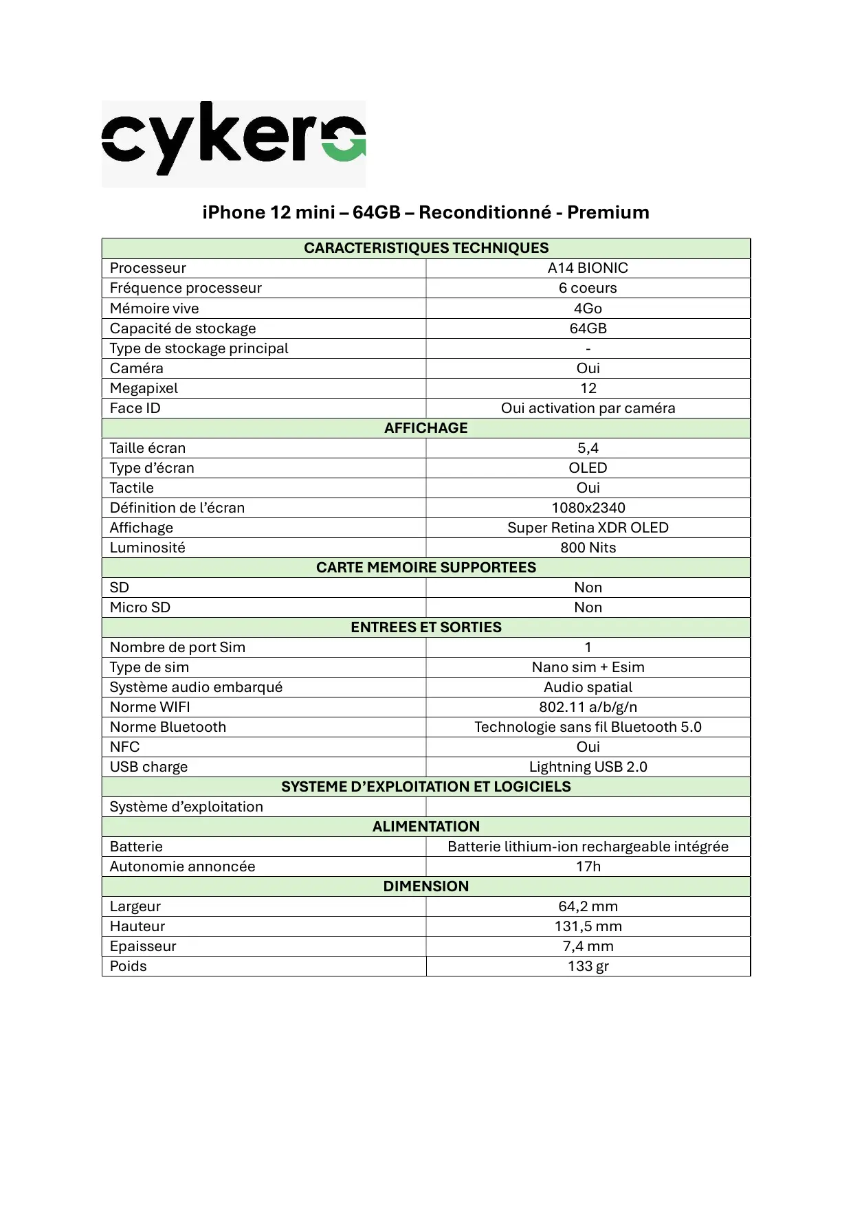 | Système d'exploitation | iOS 14 (mise à jour vers les versions ultérieures disponibles) |