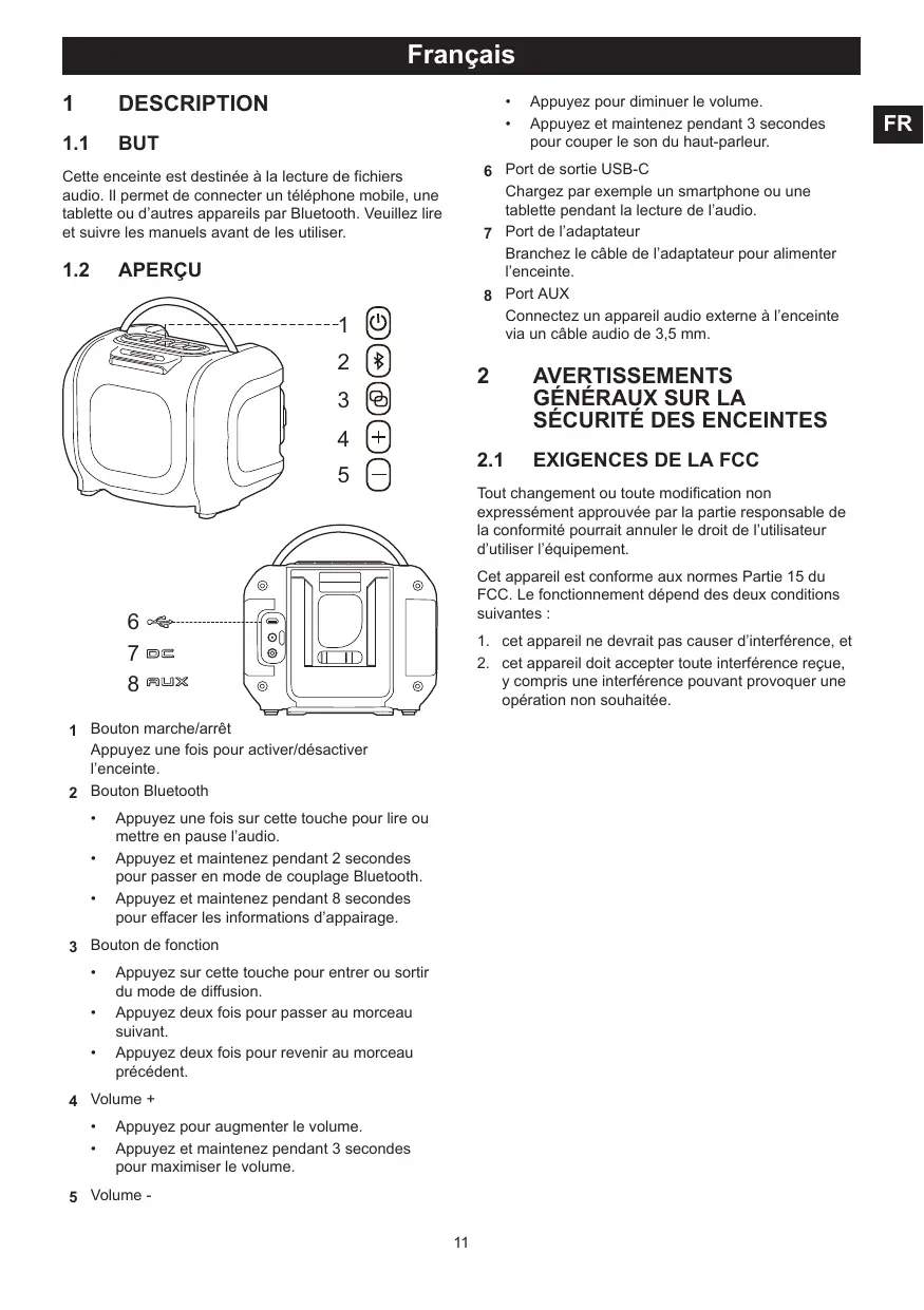 8 Port AUX Connectez un appareil audio externe à l'enceinte via un câble audio de 3,5 mm
