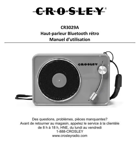 CR3029A - Haut-parleur Bluetooth Crosley - Notice d'utilisation et mode d'emploi gratuit
