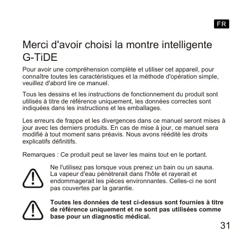 Ne l'utlisez pas lorsque vous prenez un bain ou un sauna.
