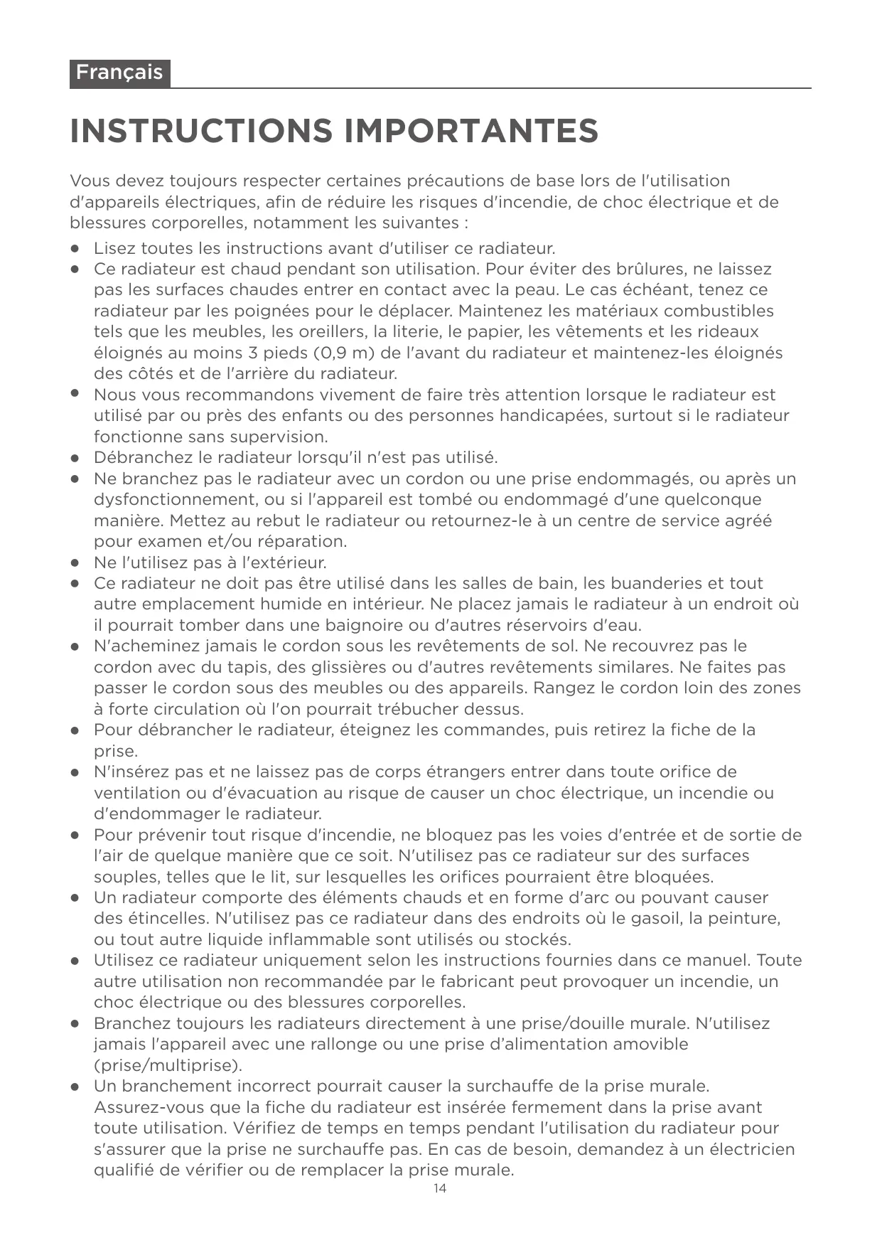 Lisez toutes les instructions avant d'utiliser ce radiateur.