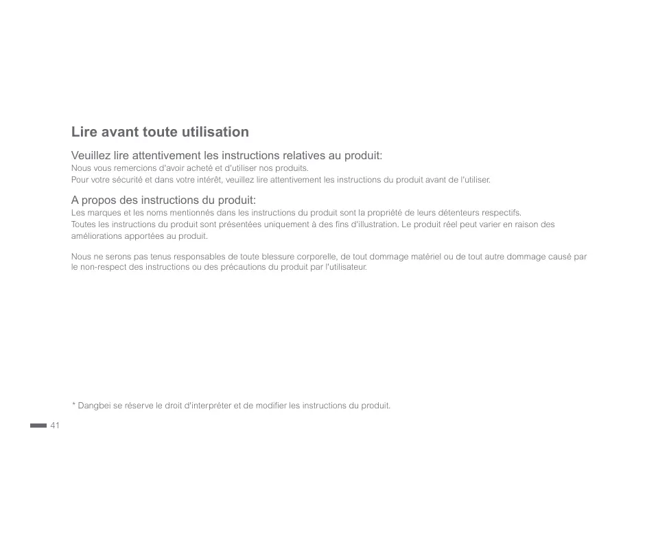 * Dangbeï se réserve le droit d'interpréter et de modifier les instructions du produit