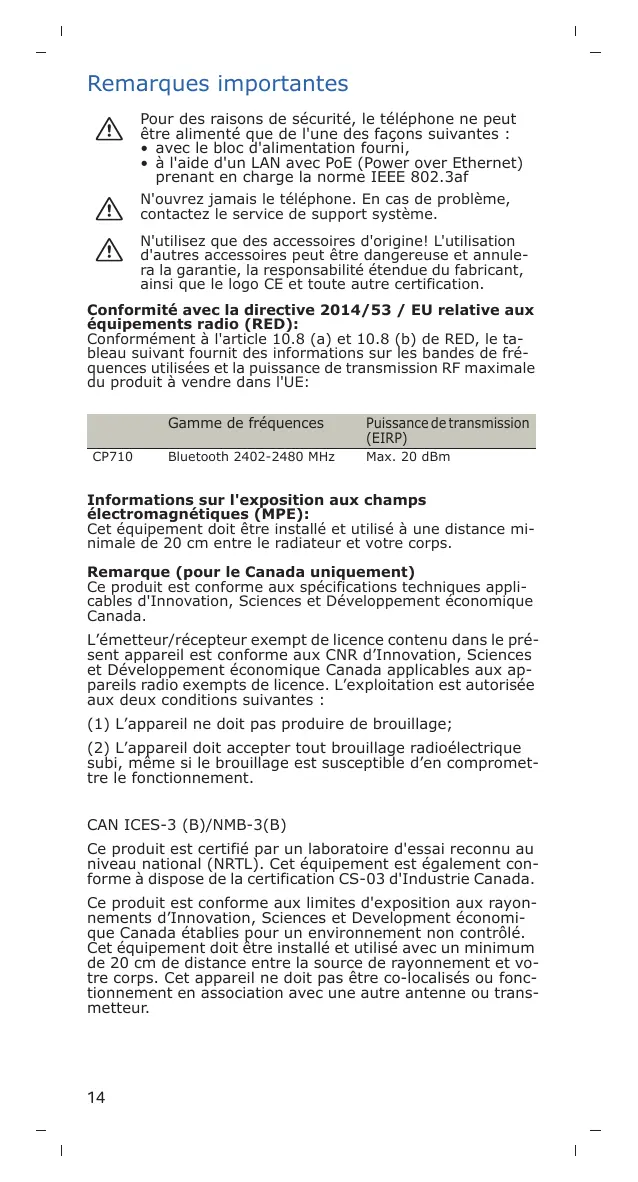 Retrouvez gratuitement la notice de l'appareil CP710 Unify au format PDF.