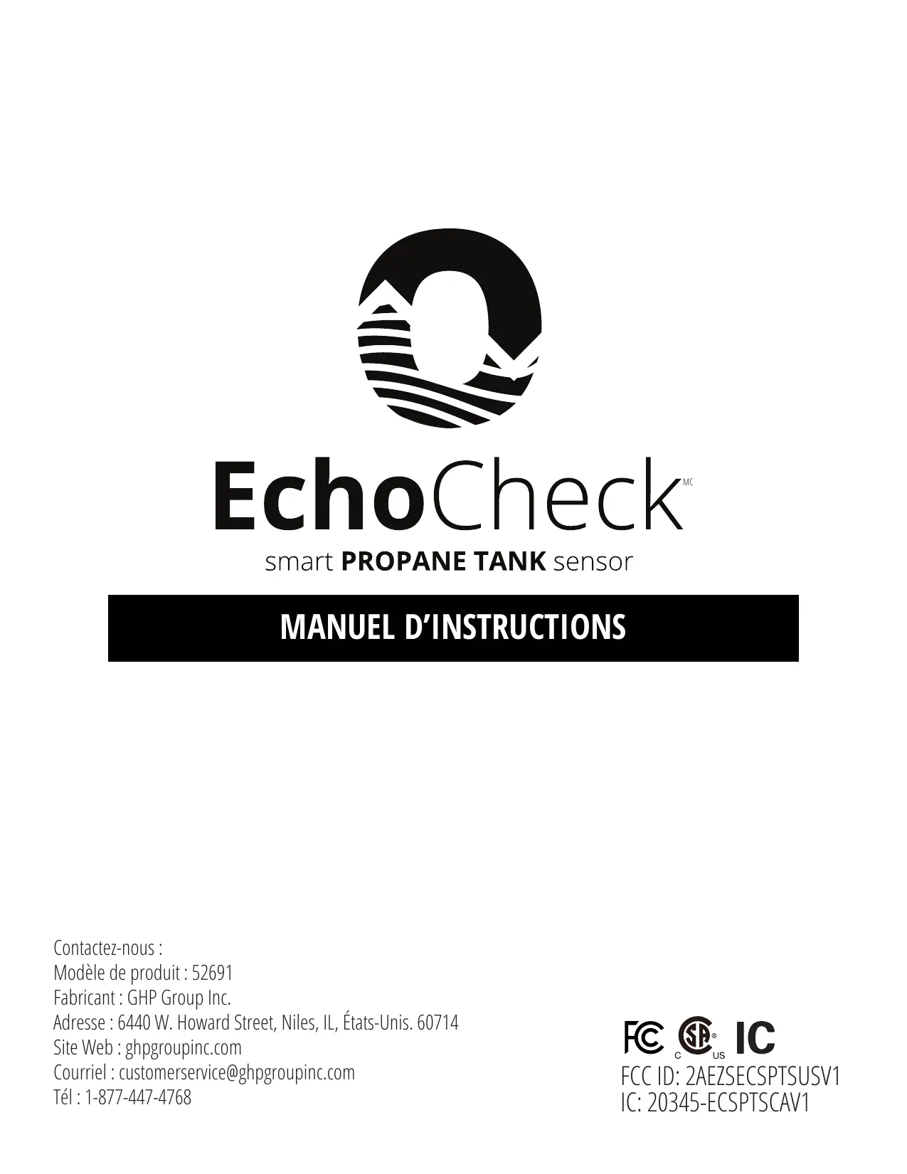 52691 - Capteur de propane GHP Group Inc. - Notice d'utilisation et mode d'emploi gratuit