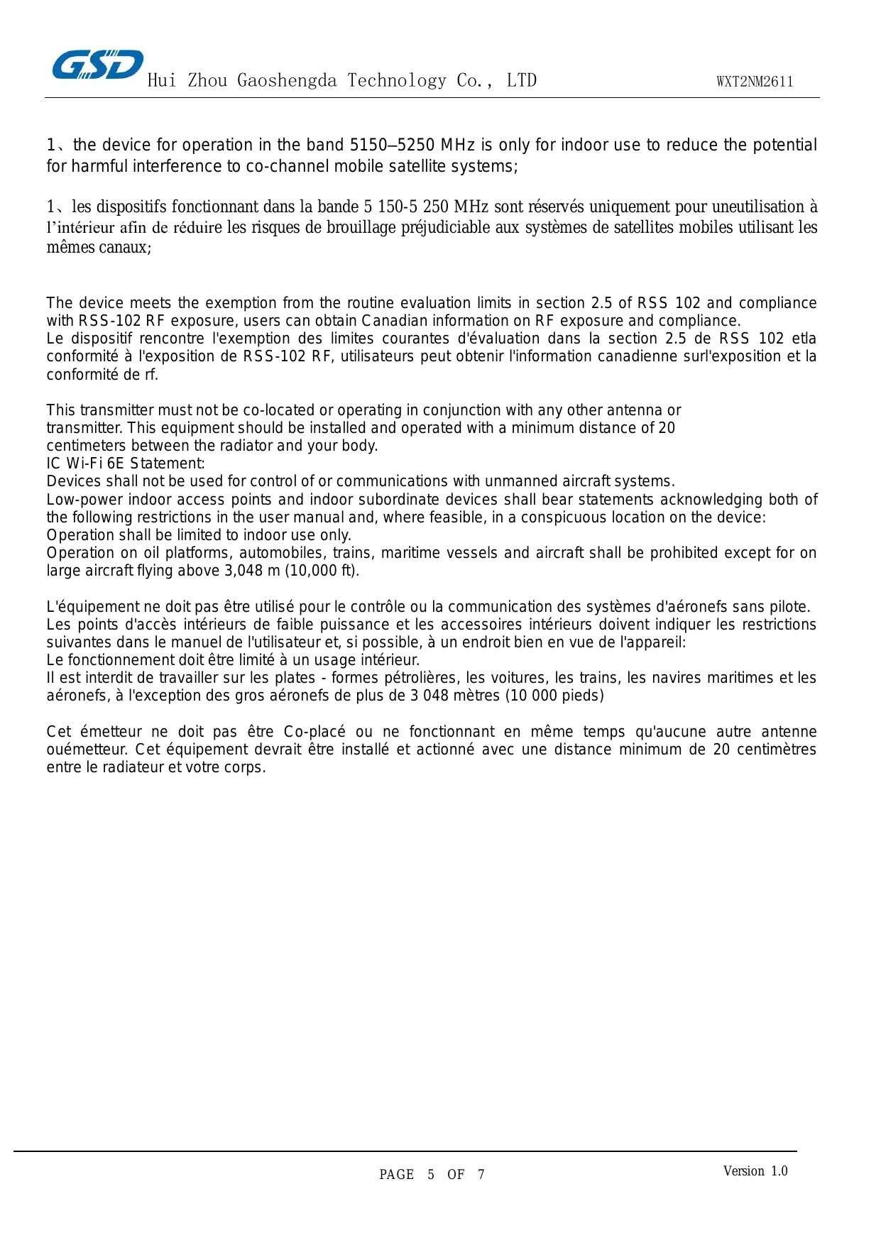 Retrouvez gratuitement la notice de l'appareil WXT2NM2611 Hui Zhou Gaoshengda Technology au format PDF.
