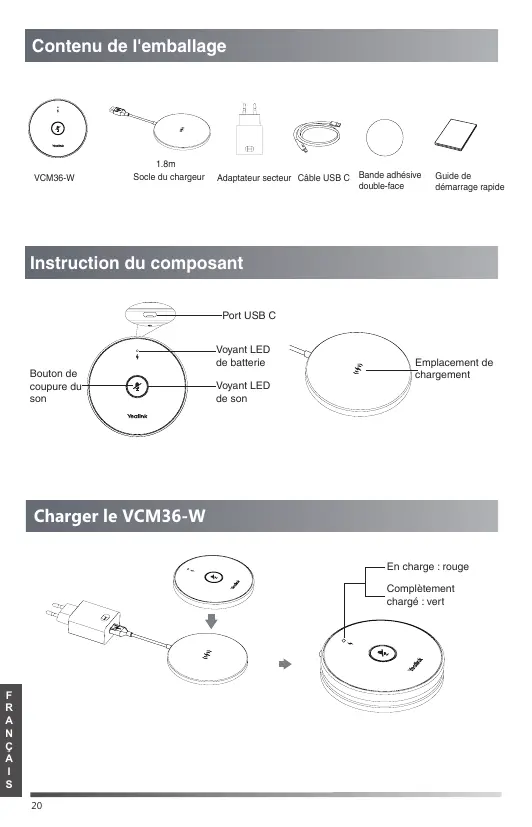 Retrouvez gratuitement la notice de l'appareil VCM36-W Yealink au format PDF.