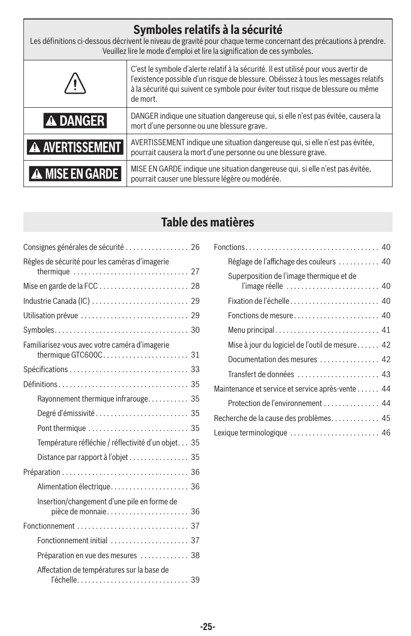 Téléchargez la notice de votre Caméra thermique au format PDF gratuitement ! Retrouvez votre notice GTC600C - BOSCH et reprennez votre appareil électronique en main. Sur cette page sont publiés tous les documents nécessaires à l'utilisation de votre appareil GTC600C de la marque BOSCH.