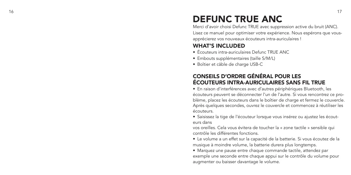 TRUE ANC - Casque audio Defunc - Notice d'utilisation et mode d'emploi gratuit