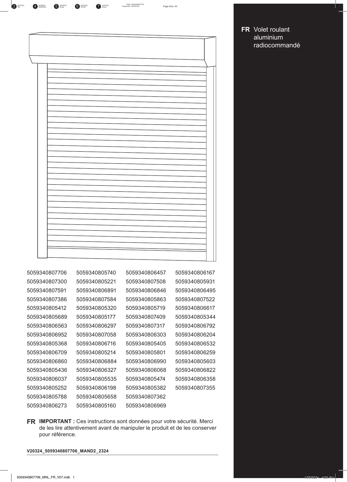 - En cas de vent violent, votre volet doit être complètement ouvert ou complètement fermé.