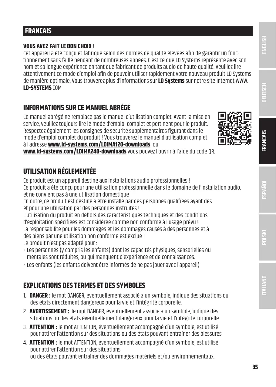 à l'adresse www.Id-systems.com/LDIMA120-downloads ou wuw.ld-systems.com/LDIMA240-downloads vous pouvez l'ouvrir à l'aide du code OR.