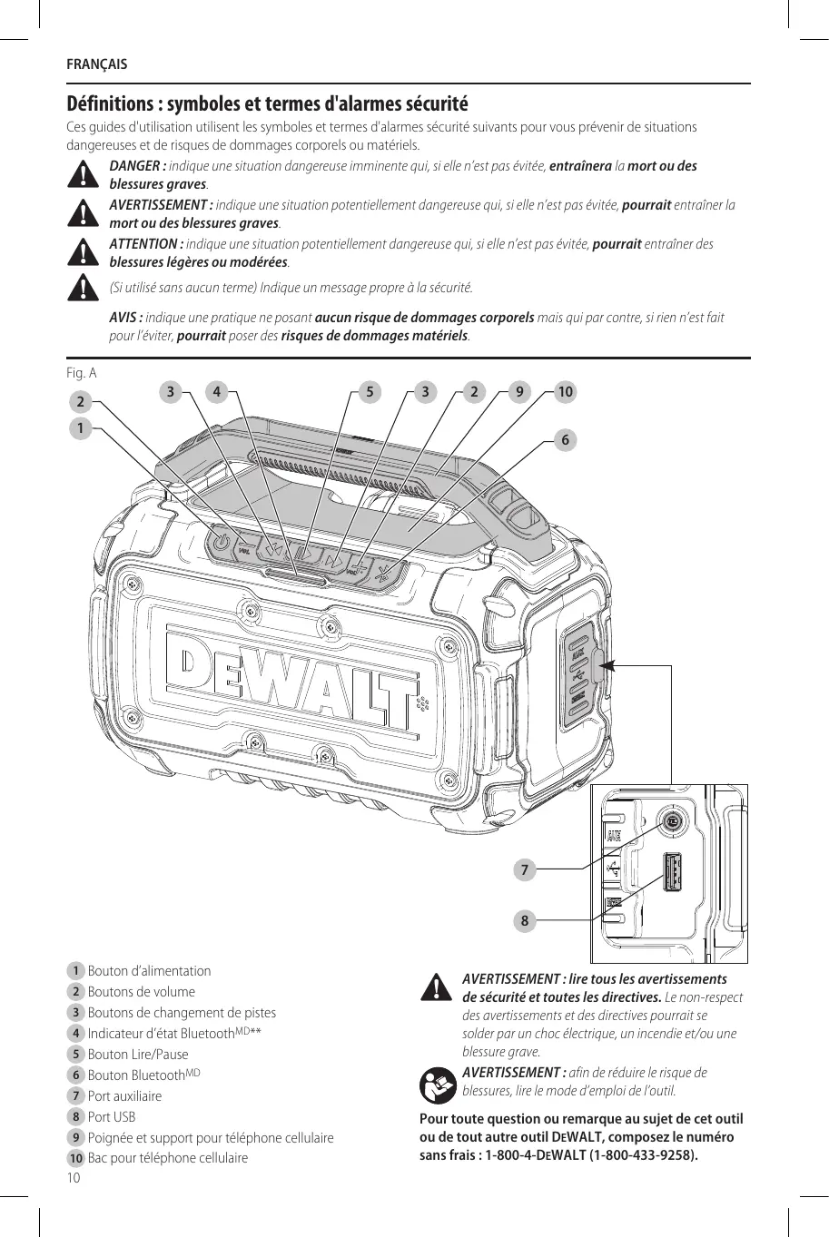 Pour toute question ou remarque au sujet de cet outil ou de tout autre outil DEWALT, composez le numéro sans frais : 1-800-4-DEWALT (1-800-433-9258).