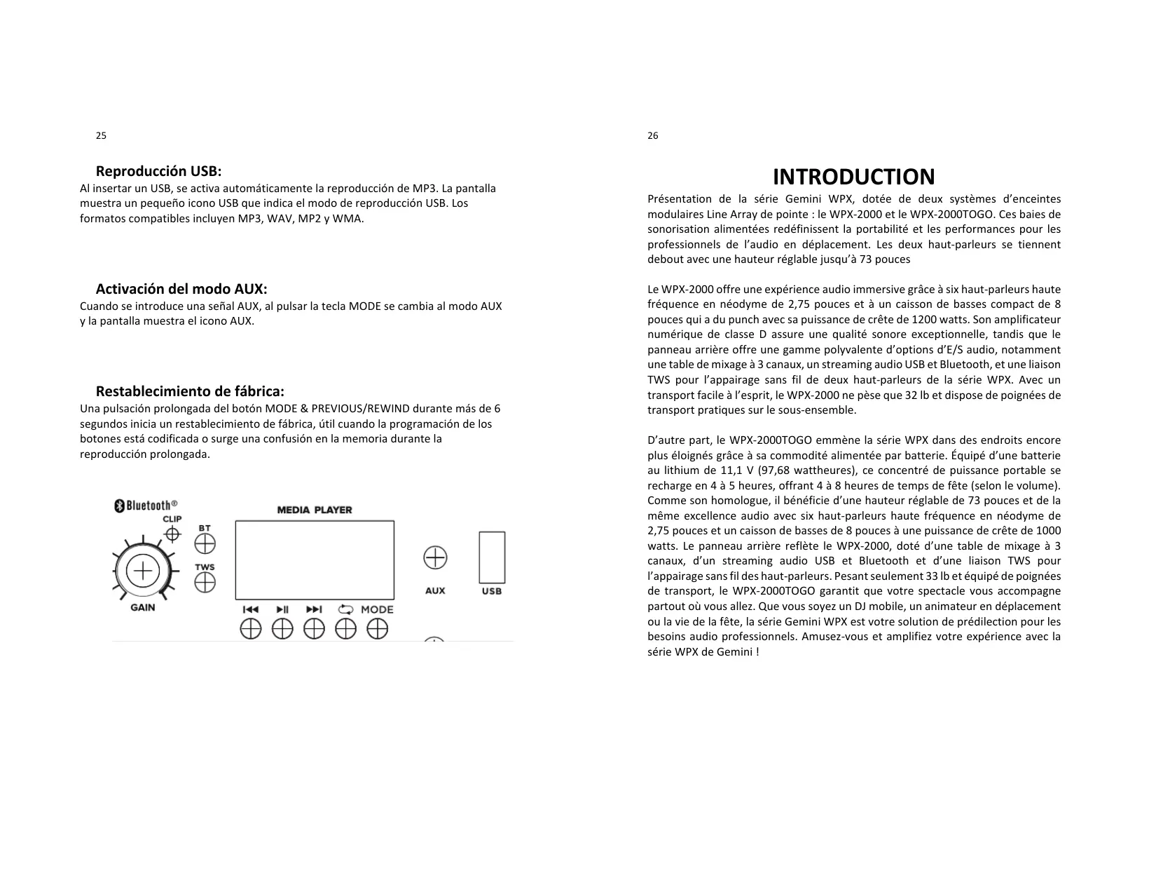 WPX-2000 - Système audio GEMINI - Notice d'utilisation et mode d'emploi gratuit