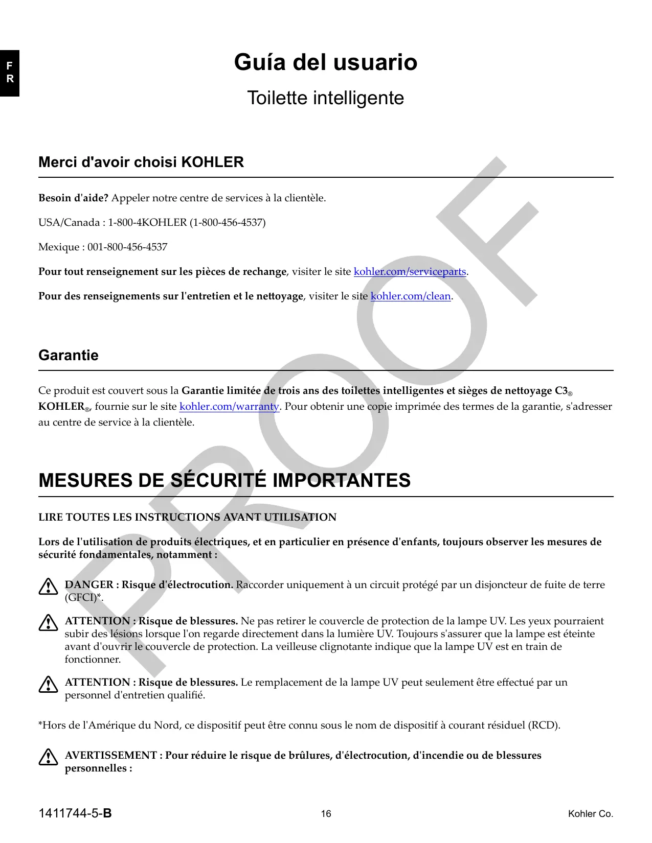 1411744-5-B - Toilette intelligente KOHLER - Notice d'utilisation et mode d'emploi gratuit