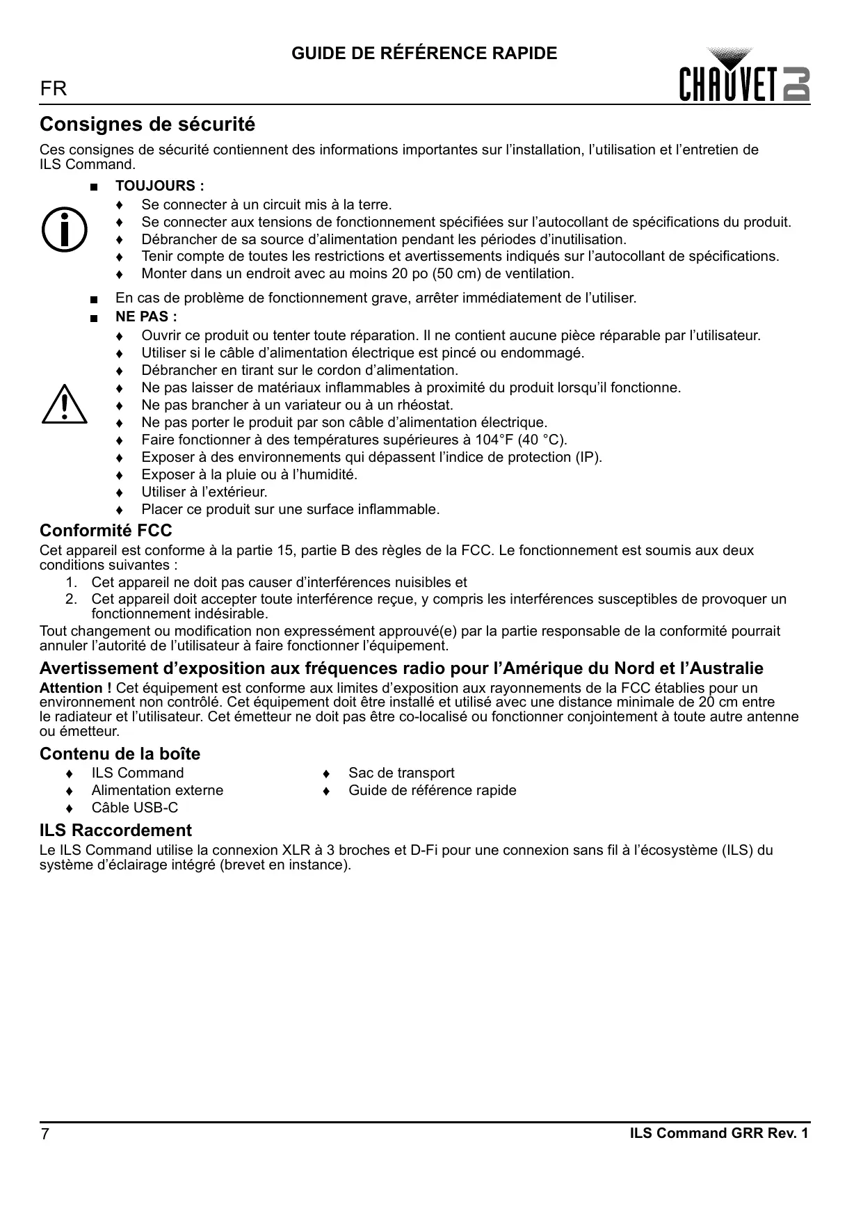MODE D'EMPLOI ILS Command Chauvet