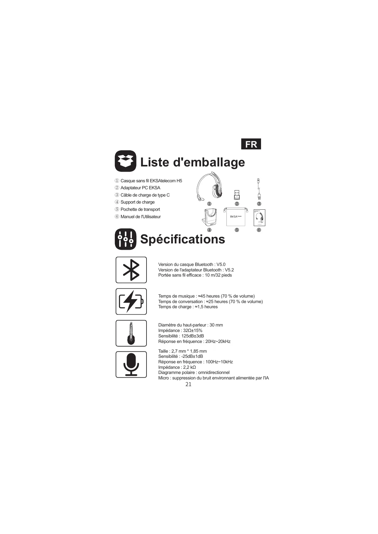H5 - Casque audio EKSA - Notice d'utilisation et mode d'emploi gratuit