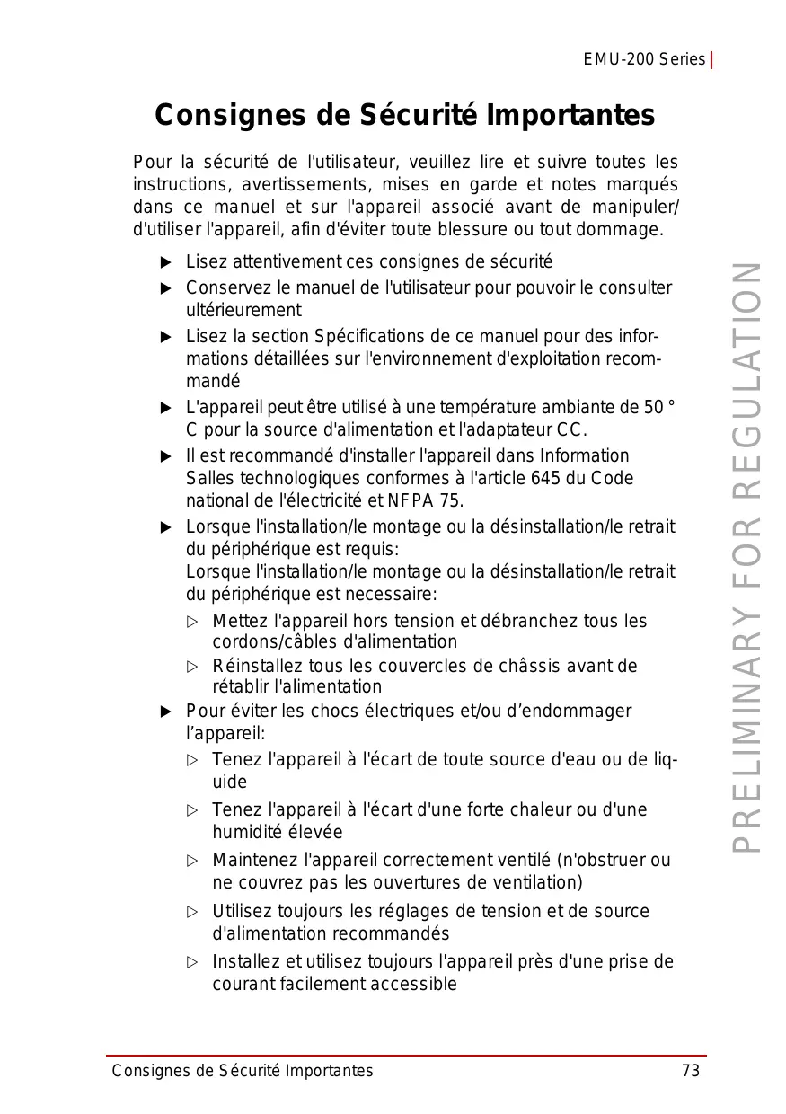 Consignes de Sécurité Importantes 73
