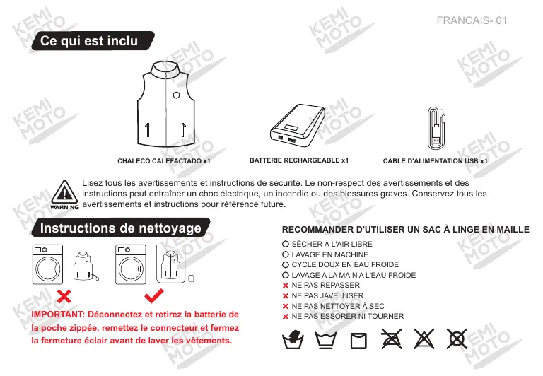 F1117-07201 - Veste chauffante KEMIMOTO - Notice d'utilisation et mode d'emploi gratuit