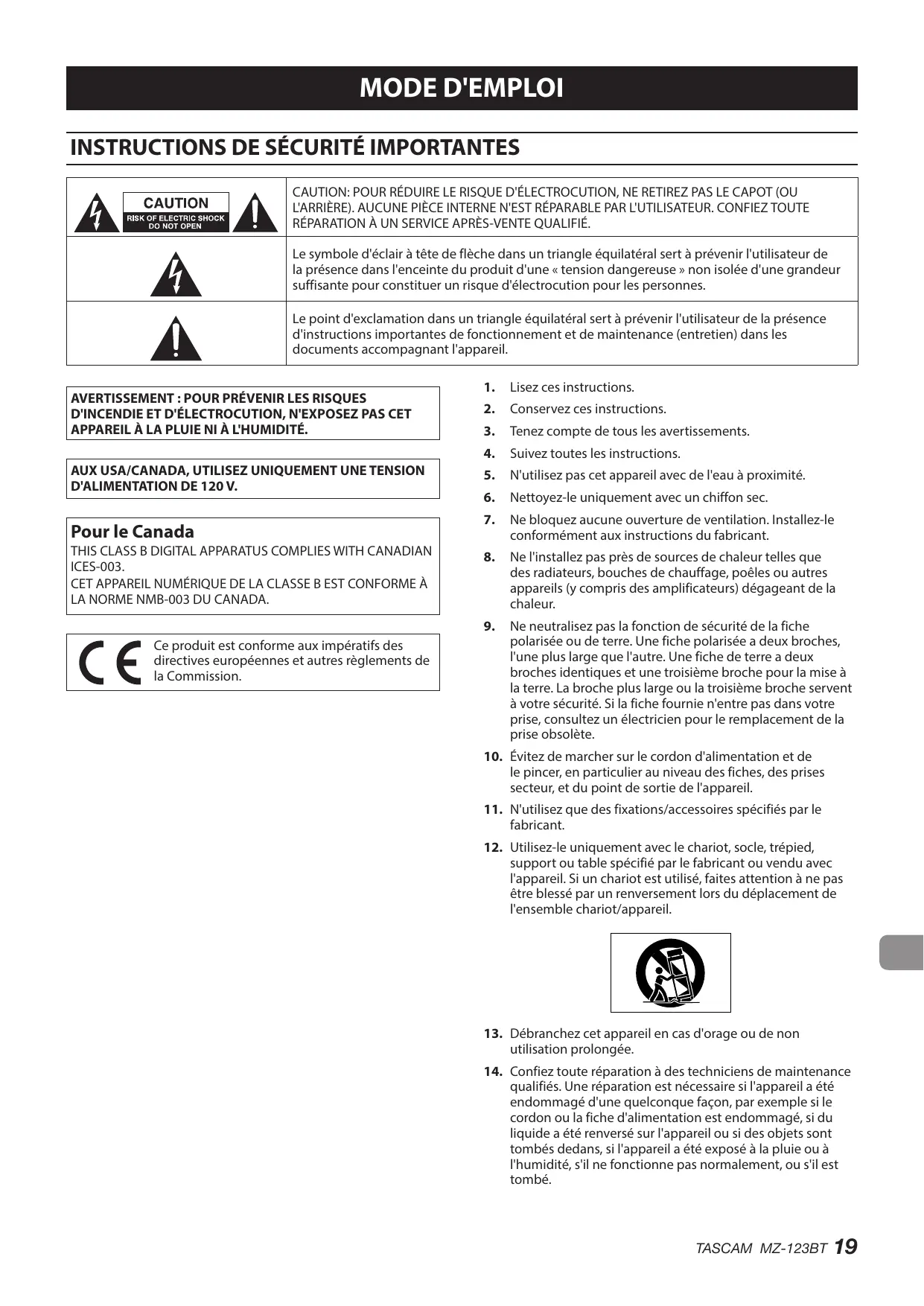 MODE D'EMPLOI MZ-123BT TASCAM