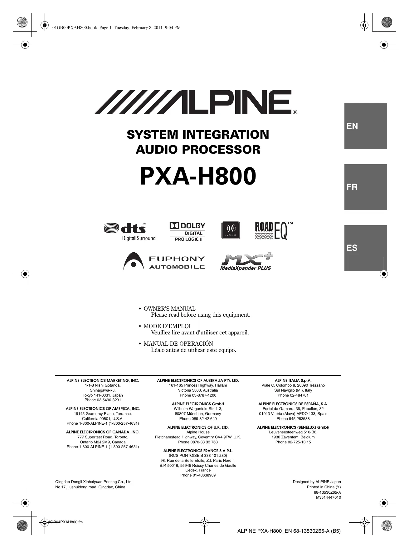 Retrouvez gratuitement la notice de l'appareil RUX-C800 ALPINE au format PDF.